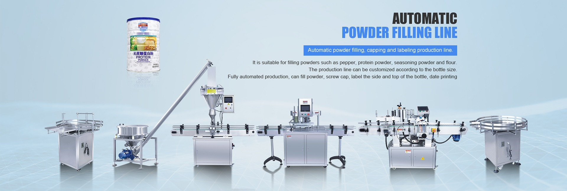 Unscrambler + auger powder filler with pumping machine + can sealing machine + labeling machine + can collecting table