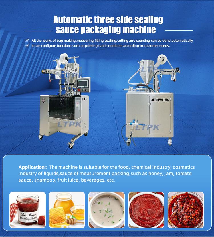 The machine is suitable for the food, chemical industry, cosmetics industry of liquids,sauce of measurement packing,such as honey, jam, tomato sauce, shampoo, fruit juice, beverages, etc.