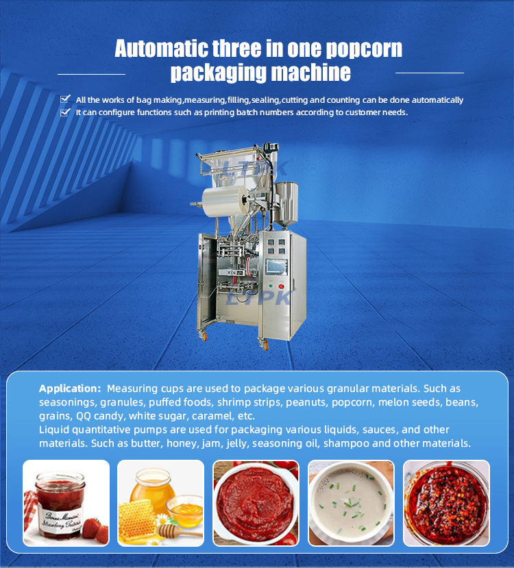 Measuring cups are used to package various granular materials. Such as seasonings, granules, puffed foods, shrimp strips, peanuts, popcorn, melon seeds, beans, grains, QQ candy, white sugar, caramel, etc.