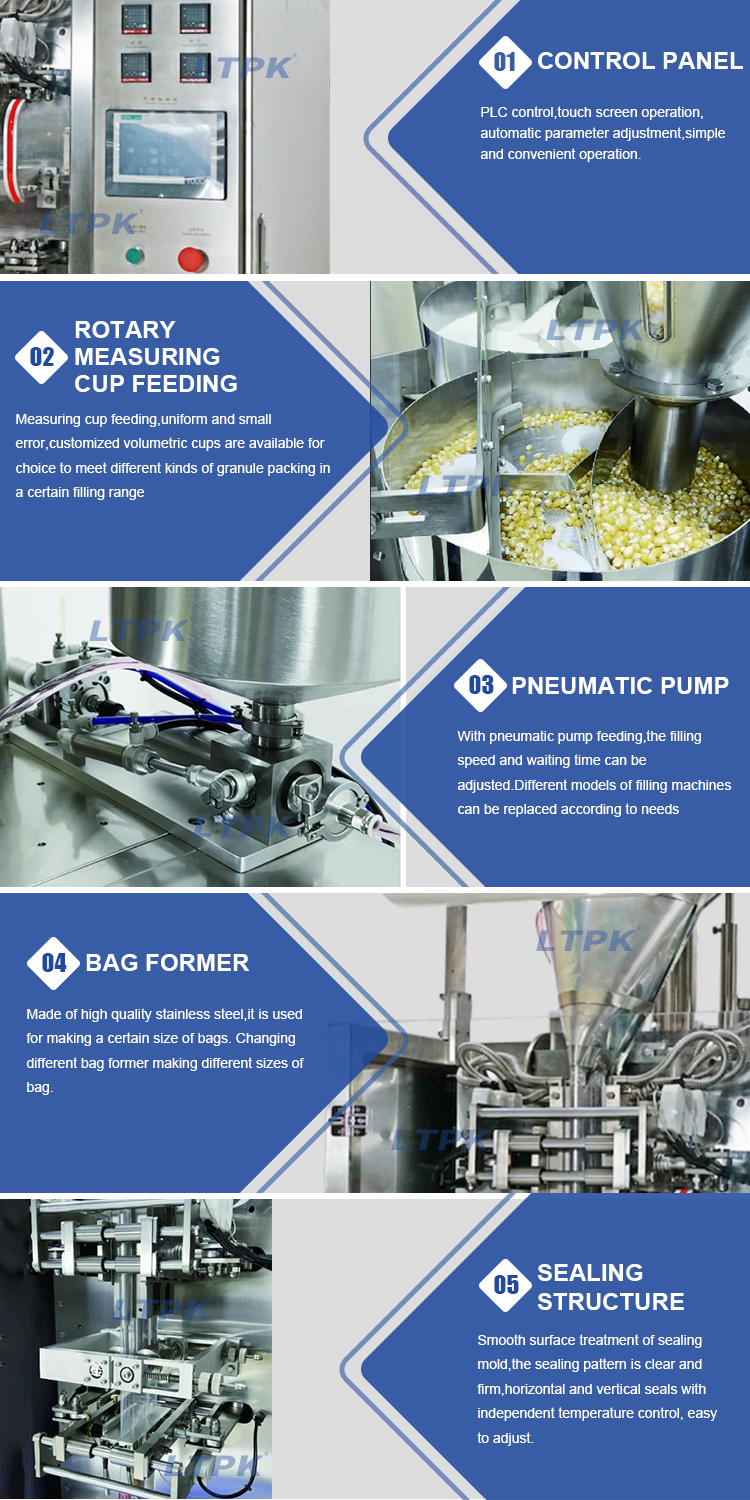 This machine adopts the touch screen operation, PLC control, drive stepper motor to control the bag length,stable performance,easy to adjust and accurate detection.Choose the intelligent temperature controller and PID control to ensure the error range of temperature controlled within 1 degree Centigrade.