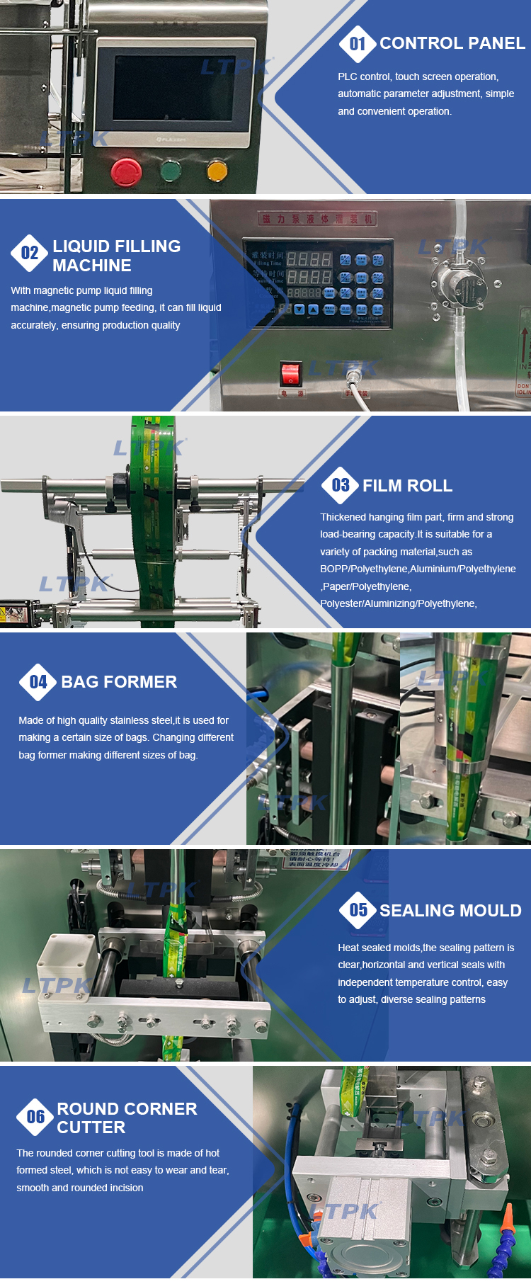 This machine adopts the touch screen operation, PLC control, drive stepper motor to control the bag length,stable performance,easy to adjust and accurate detection.Choose the intelligent temperature controller and PID control to ensure the error range of temperature controlled within 1 degree Centigrade.