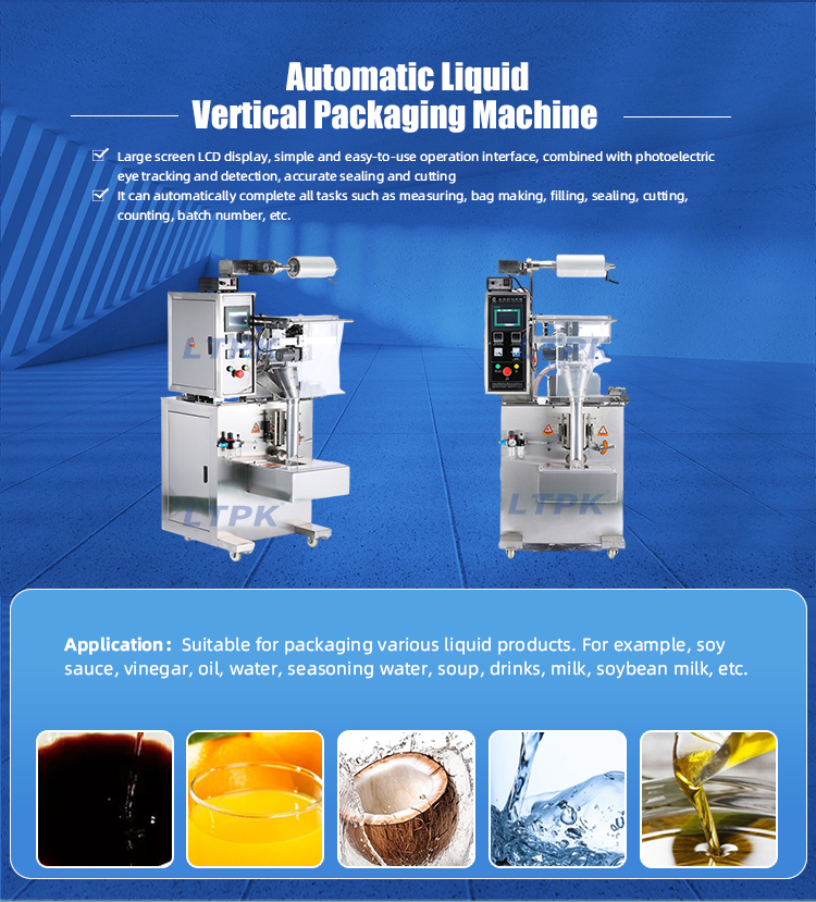 Suitable for packaging various liquid products. For example, soy sauce, vinegar, oil, water, seasoning water, soup, drinks, milk, soybean milk, etc.