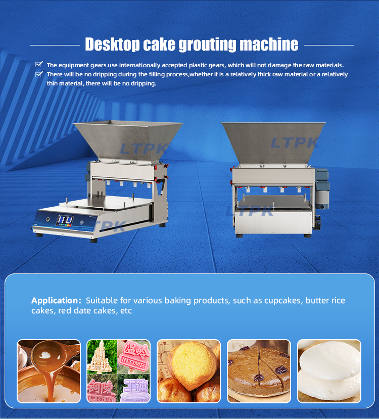 Cupcake filling machines are a widely used piece of professional food processing equipment in bakeries and food processing plants. Their core function is to dispense cake batter into paper cups or molds in fixed doses.The filling machine is equipped with an integrated industrial control touch screen that integrates touch sensing and intelligent control systems. It can accurately identify touch positions and operating instructions, enabling convenient and accurate equipment control.