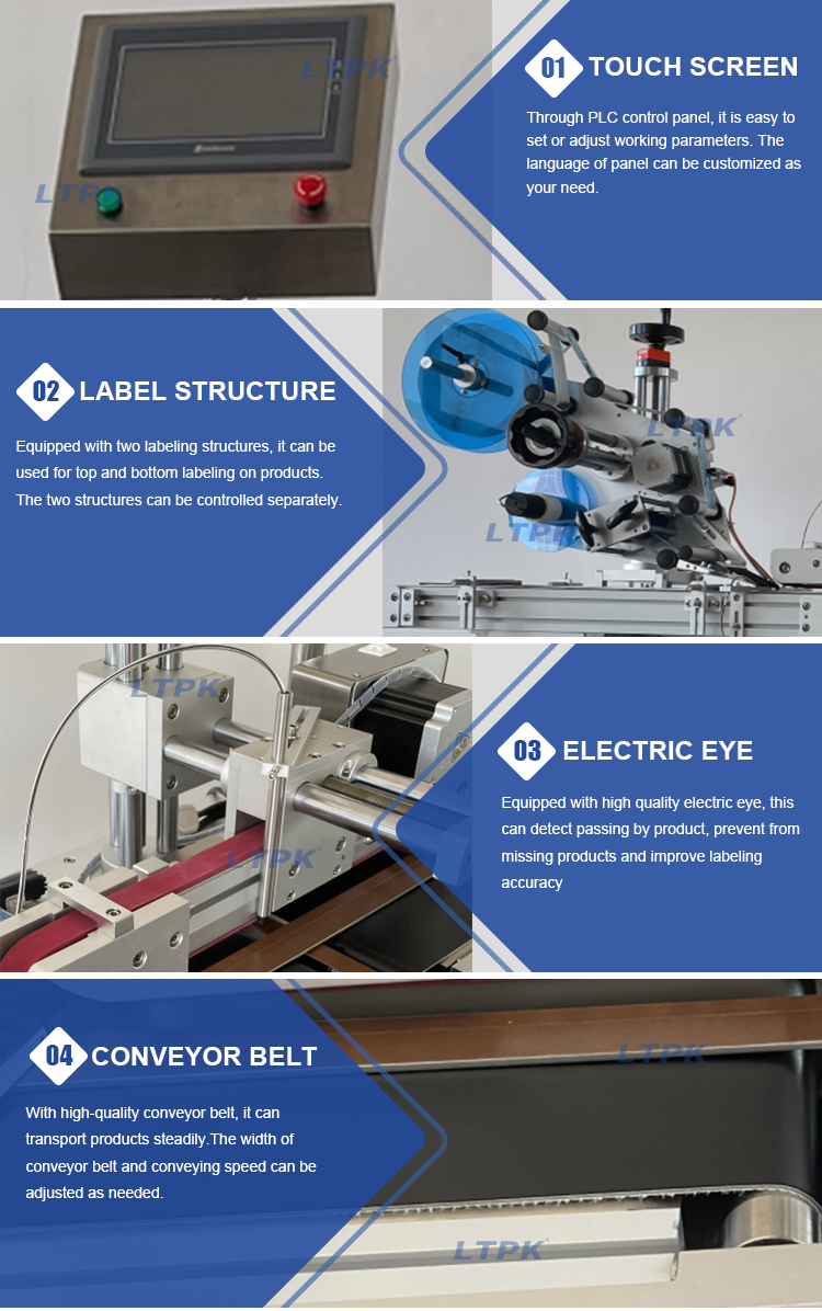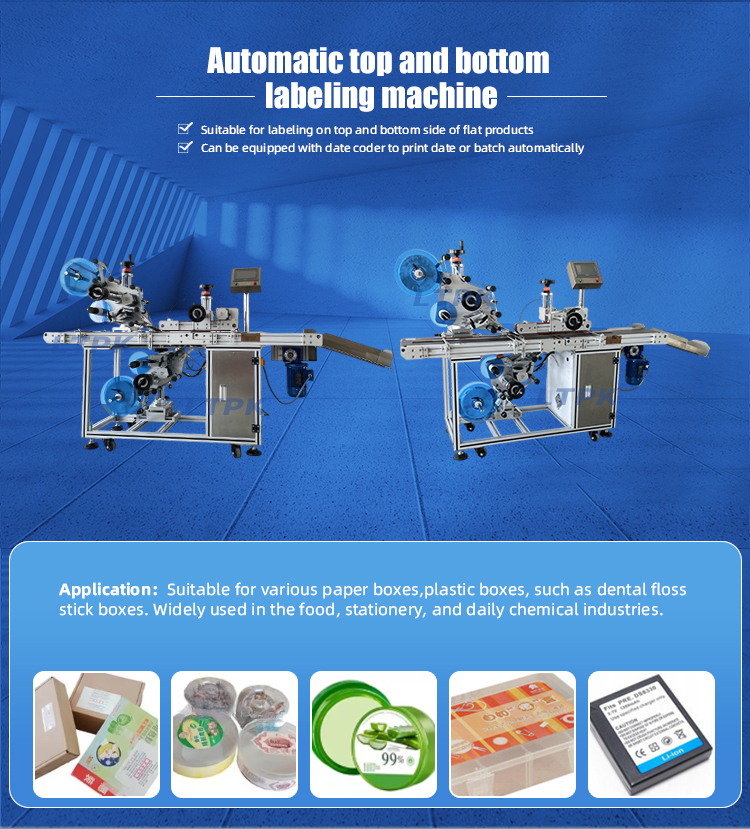 This labeling machine is designed for labeling stickers on upper and bottom flat surface at the same time, this can improve working efficiency greatly and reduce production error.It is widely used in daily chemical,cosmetics,food and beverage industries.