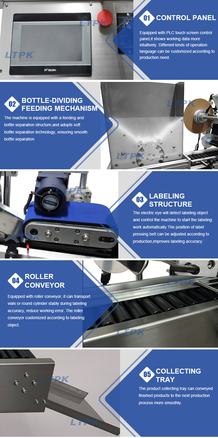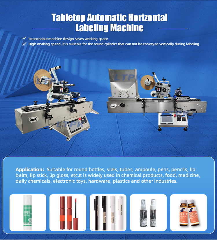 suitable for round bottles, vials, tubes, ampoule, pens, pencils, lip balm, lip stick, lip gloss, etc.It is widely used in chemical products, food, medicine, daily chemicals, electronic toys, hardware, plastics and other industries.