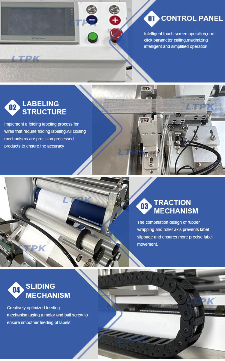 Semi-automatic folding labeling machine (including display screen) is a semi-automatic labeling machine.Working principle is placed he product on the fixture, and it is adsorbed and folded in half for labeling.Change the fixture,which can be applied to labeling various workpieces of different sizes.