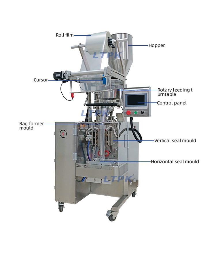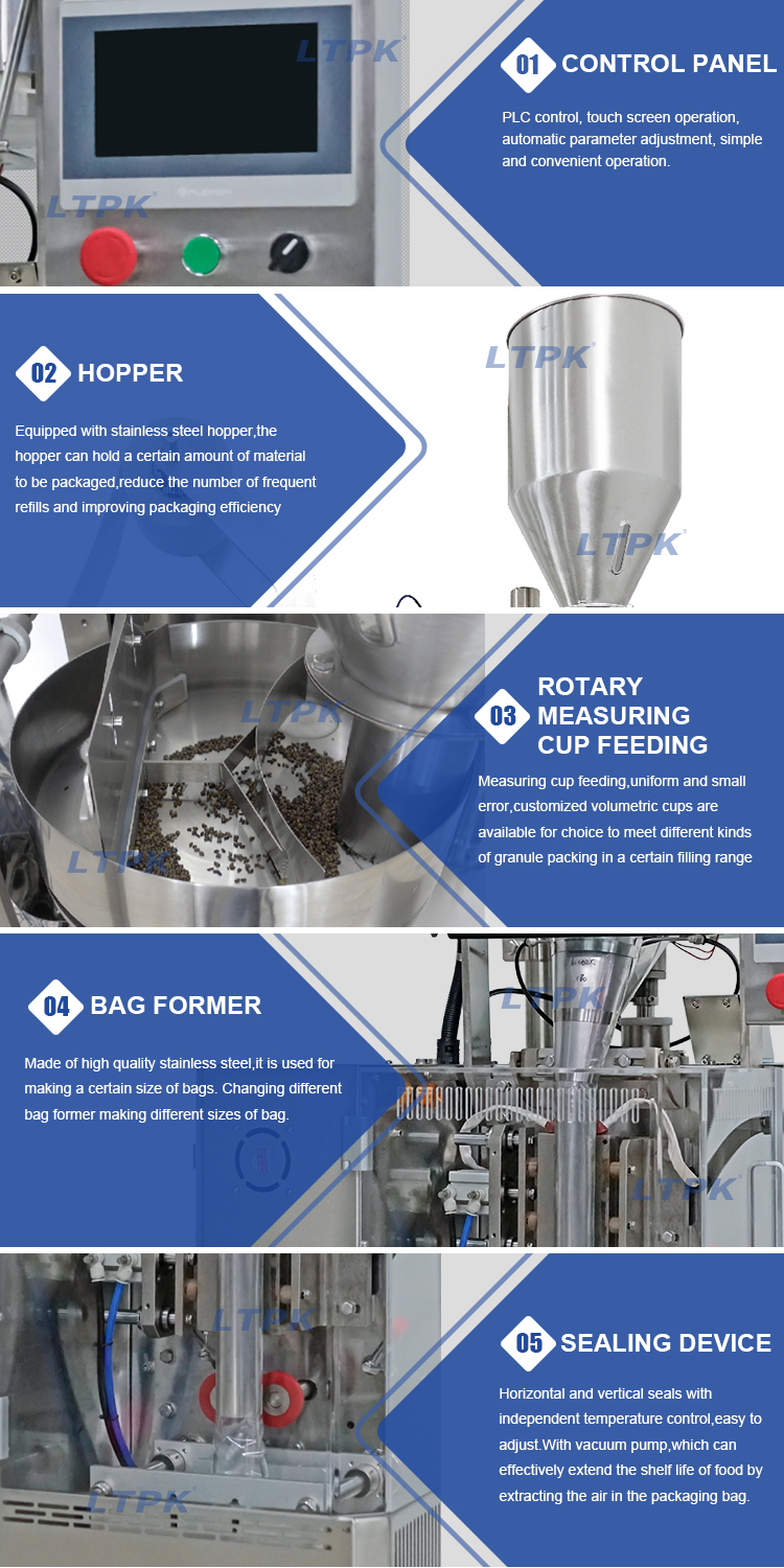The machine is suitable for vacuum metering packaging of granular items in the food,chemical, and cosmetics industries,such as nuts, peanuts, seeds, grains, chinese wolfberry,and rice,etc.